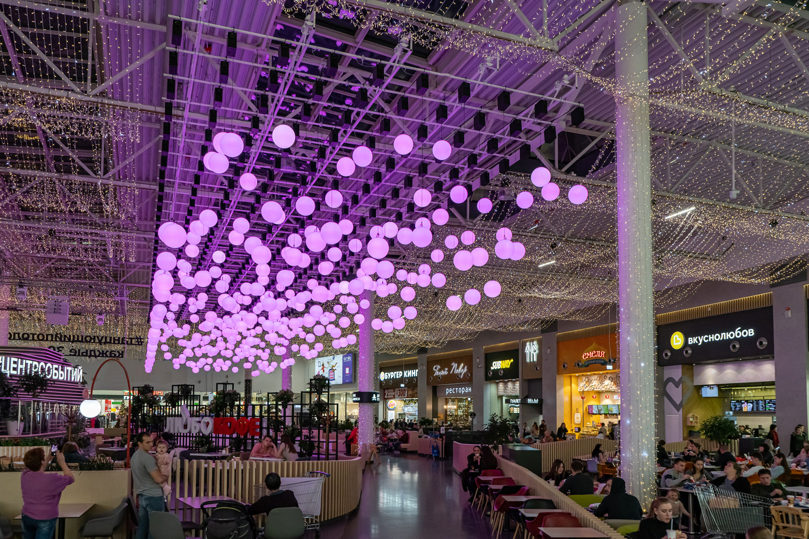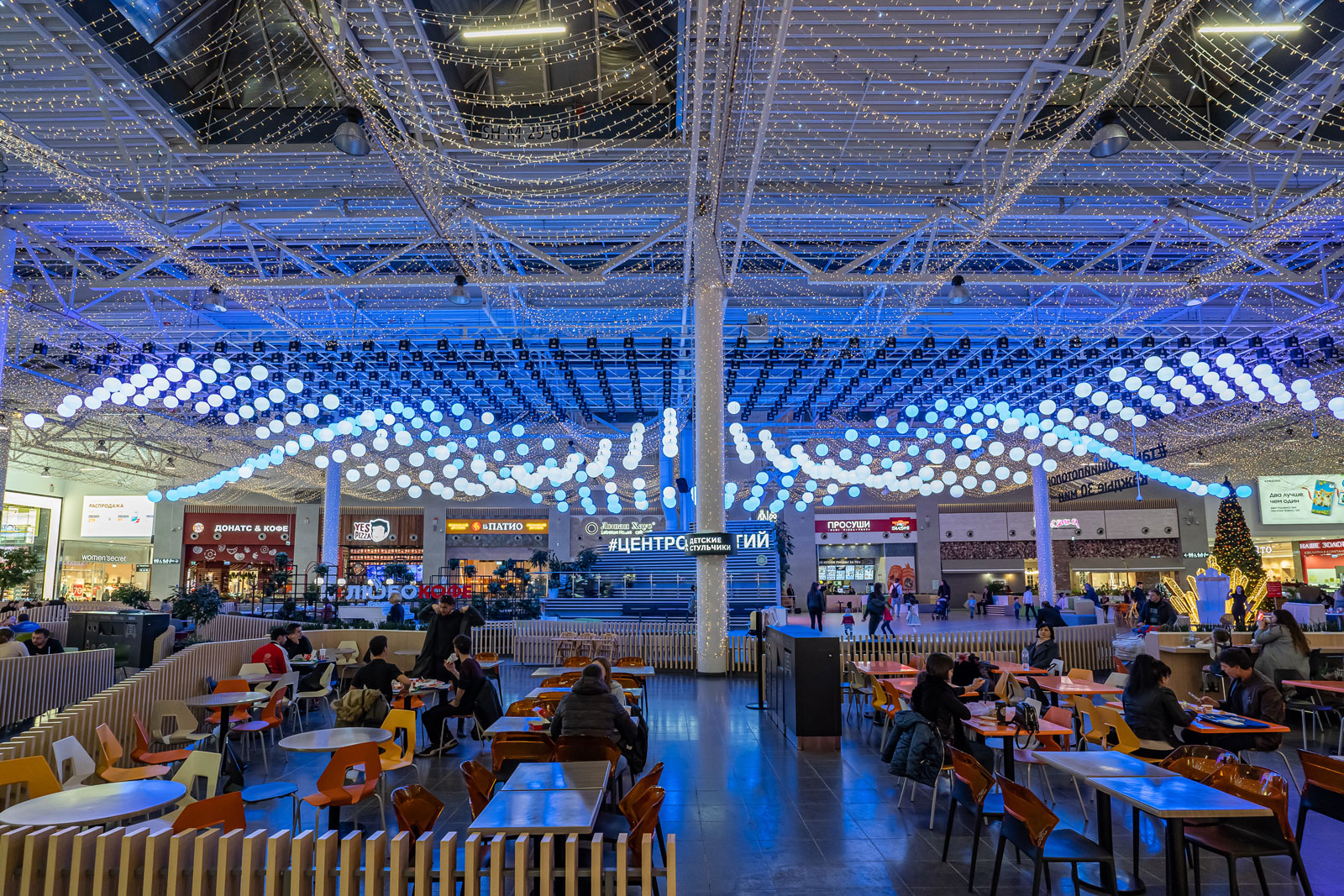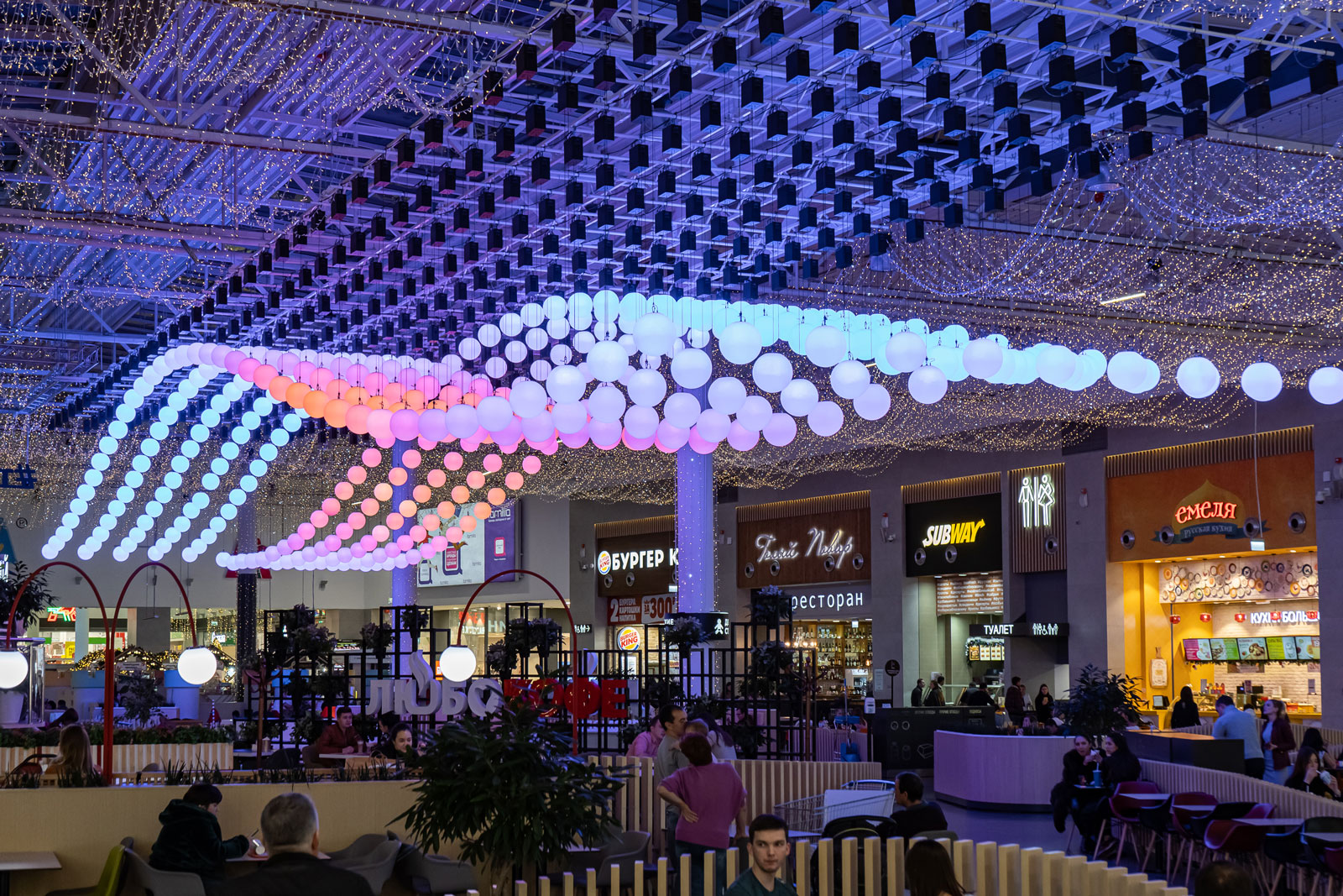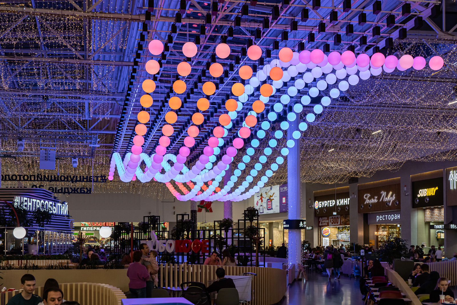 Kinetic ceiling in a shopping centre